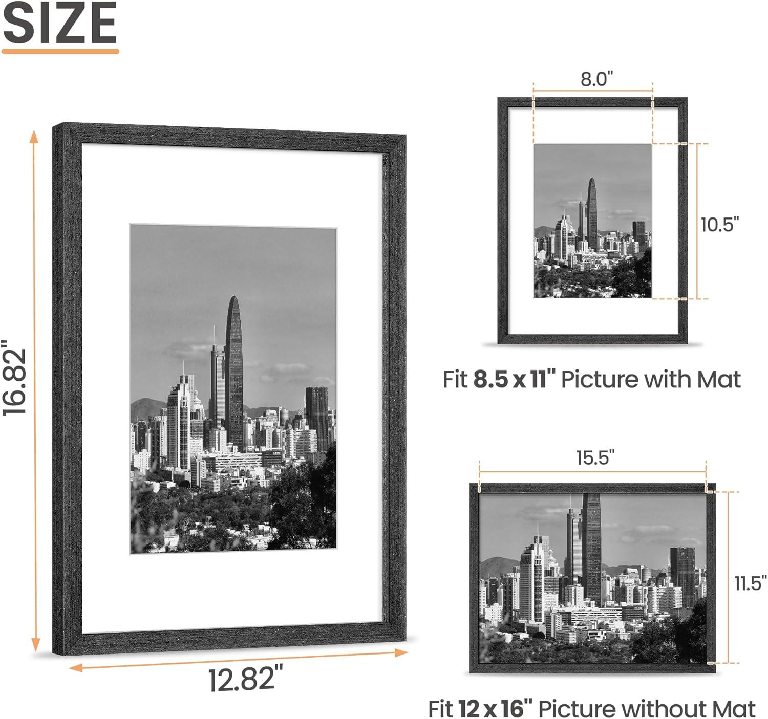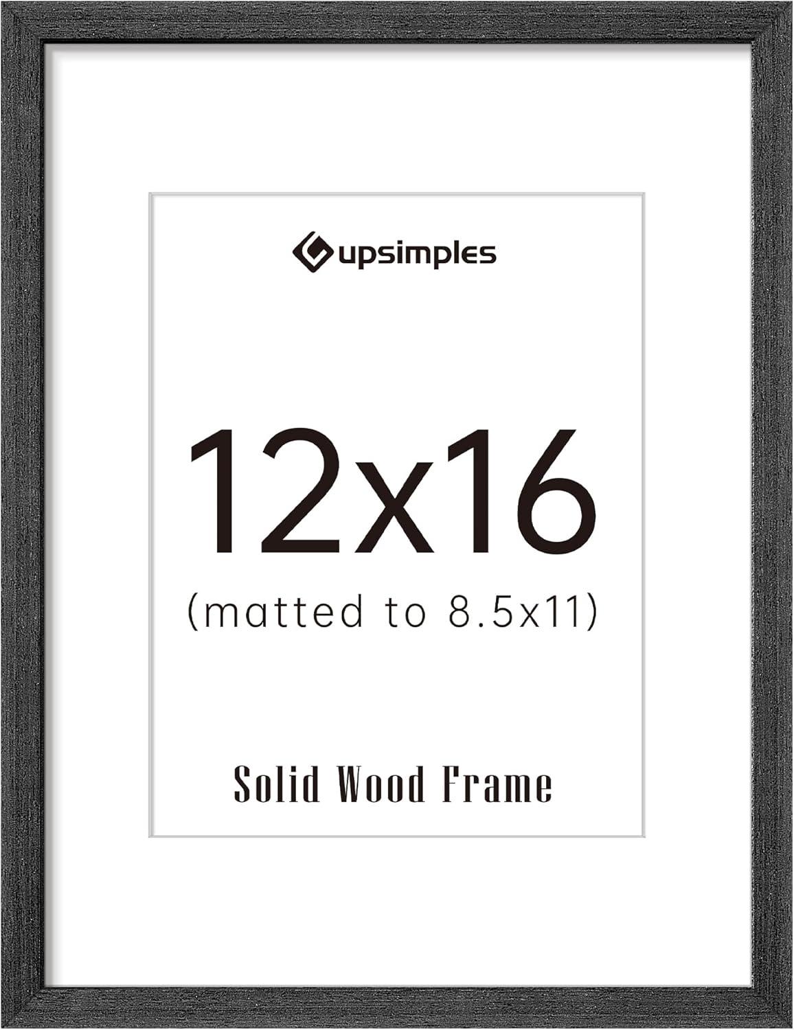 upsimples 12x16 Picture Frame, Natural Solid Wood Picture Frames, Display 8.5x11 with Mat or 12 x 16 Without, Vertical & Horizontal Wall Hanging, 1 Pack, Brown(Black)