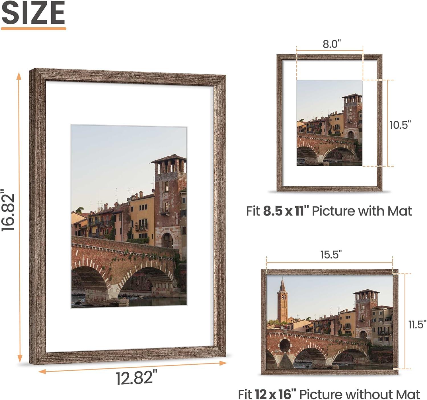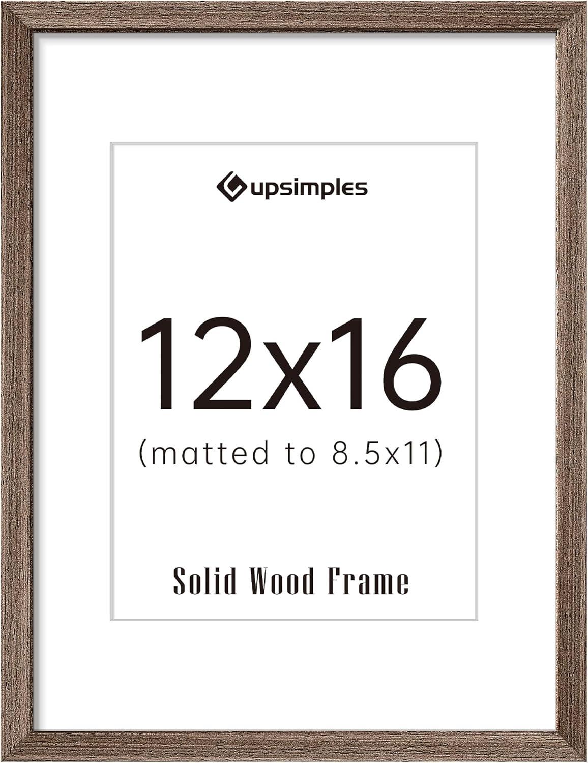 upsimples 12x16 Picture Frame, Natural Solid Wood Picture Frames, Display 8.5x11 with Mat or 12 x 16 Without, Vertical & Horizontal Wall Hanging, 1 Pack, Brown(Brown)