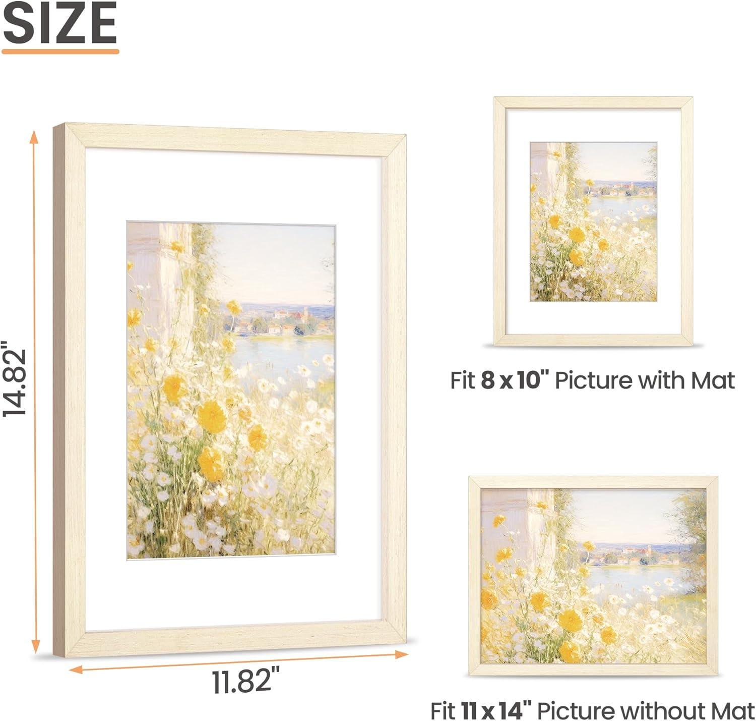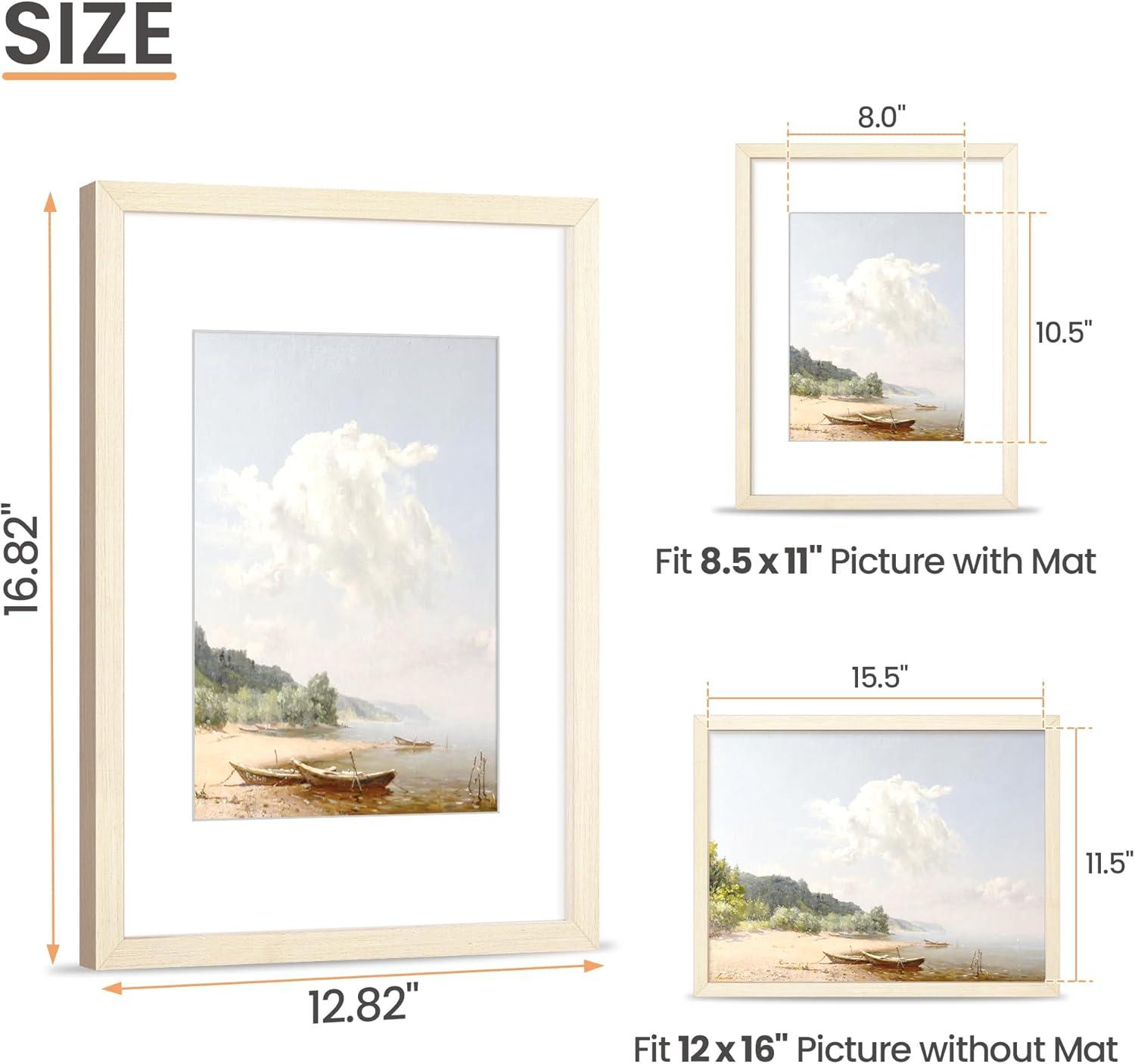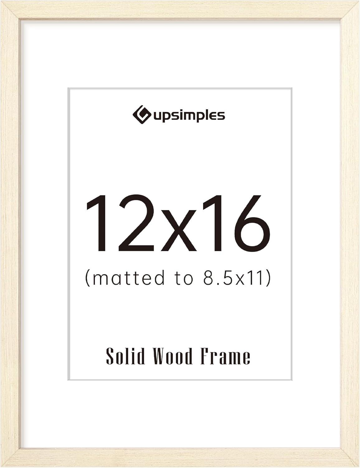 upsimples 12x16 Picture Frame, Natural Solid Wood Picture Frames, Display 8.5x11 with Mat or 12 x 16 Without, Vertical & Horizontal Wall Hanging, 1 Pack, Brown(White)
