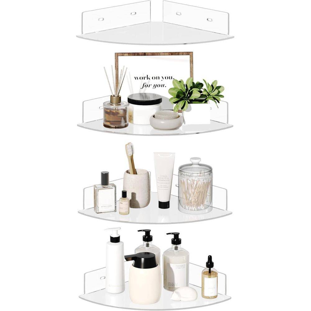 imageupsimples 4 Pack Acrylic Corner Floating Shelves 12 in Clear Hanging Shelves with Cable Management Design Wall Mounted Corner Storage Organizer for Bathroom Bedroom Living Room Kitchen12x167x2