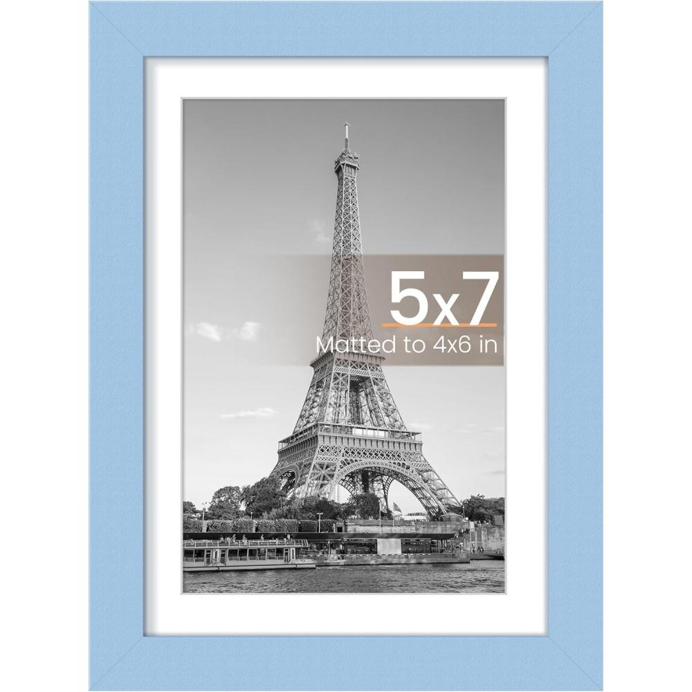 upsimples 5x7 Picture Frame, Display Pictures 4x6 with Mat or 5 x 7 Without, Wall Hanging Photo Frames, Blue, 1 Pack(Blue)