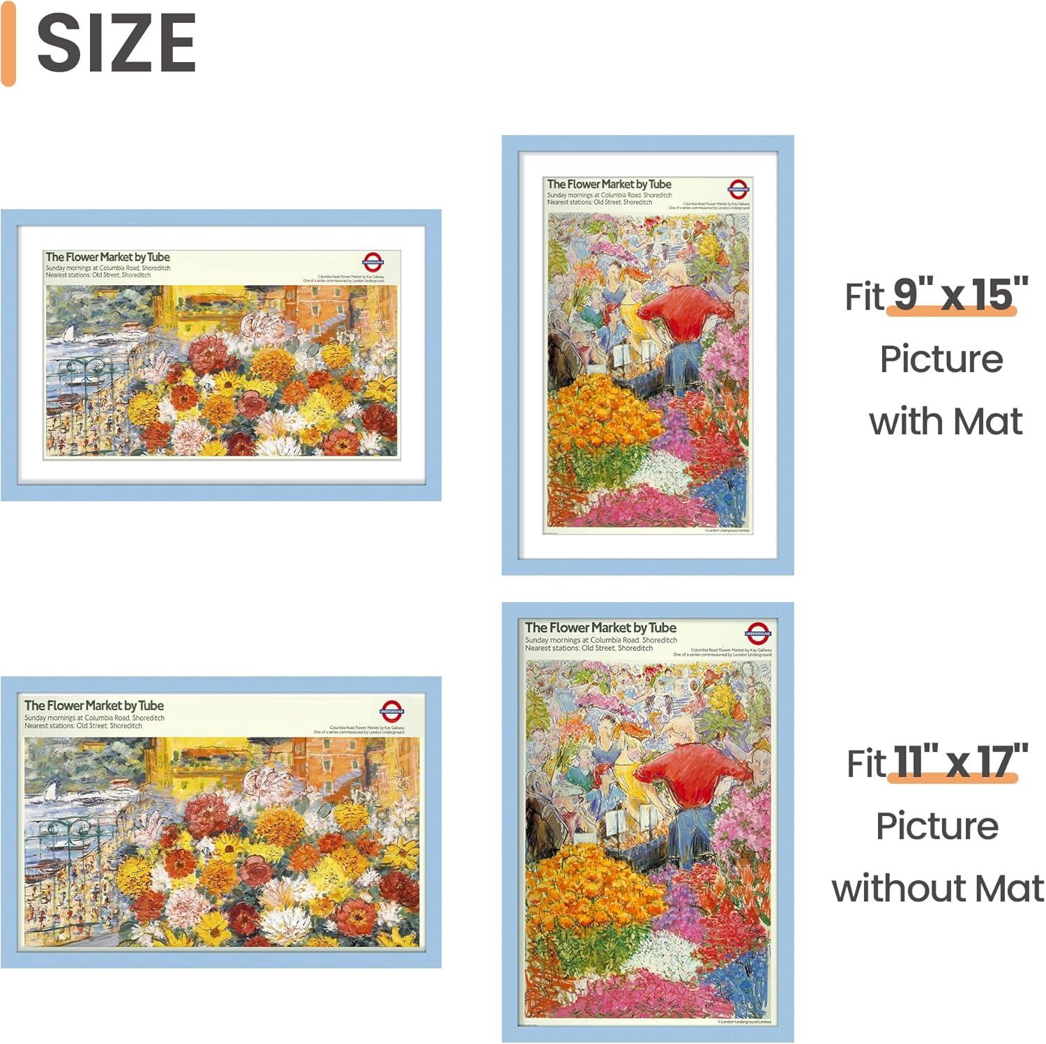 DOUBLE SIZE DESIGN: Blue 5×7 inch picture frame perfects for Pictures 4×6 with Mat or 5×7 Without Mat. The display size will be 0.5inch smaller than the photo size to better stable the photo and prevent it from falling off.