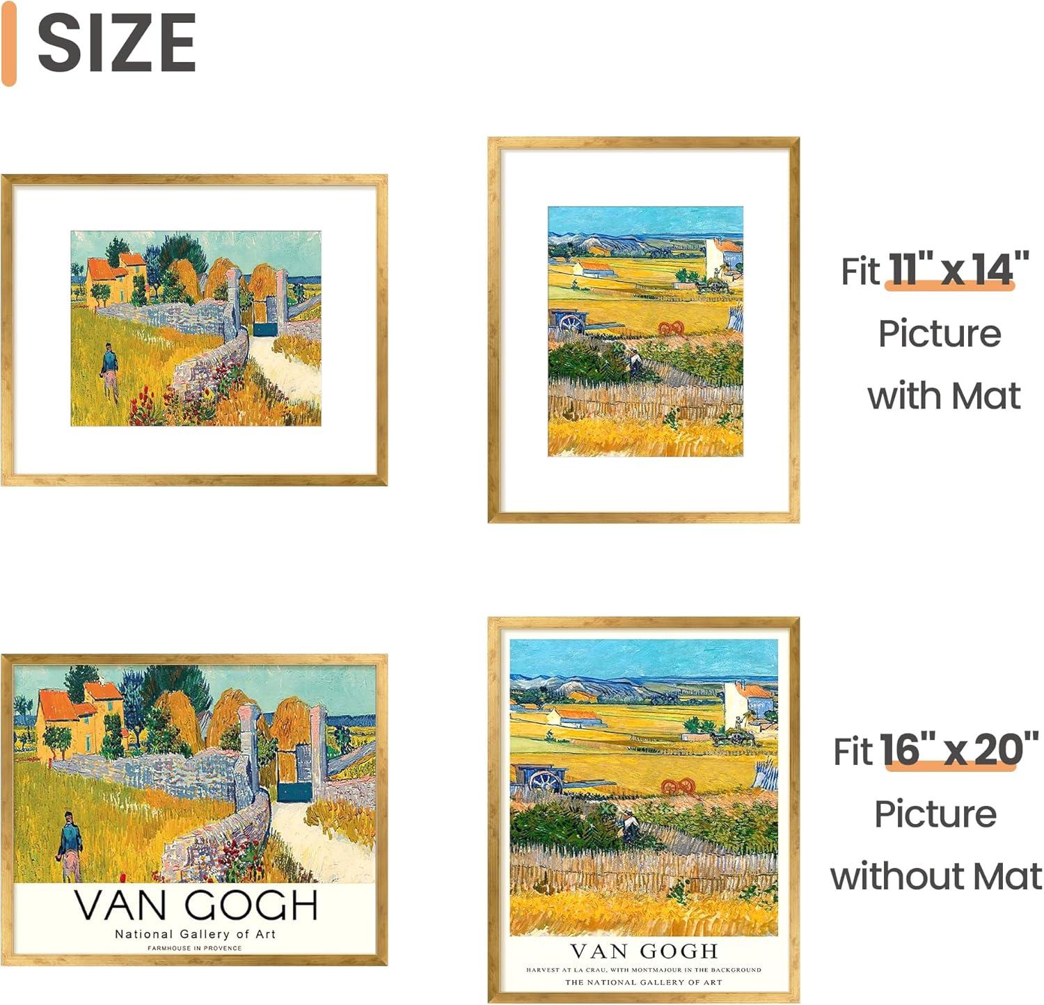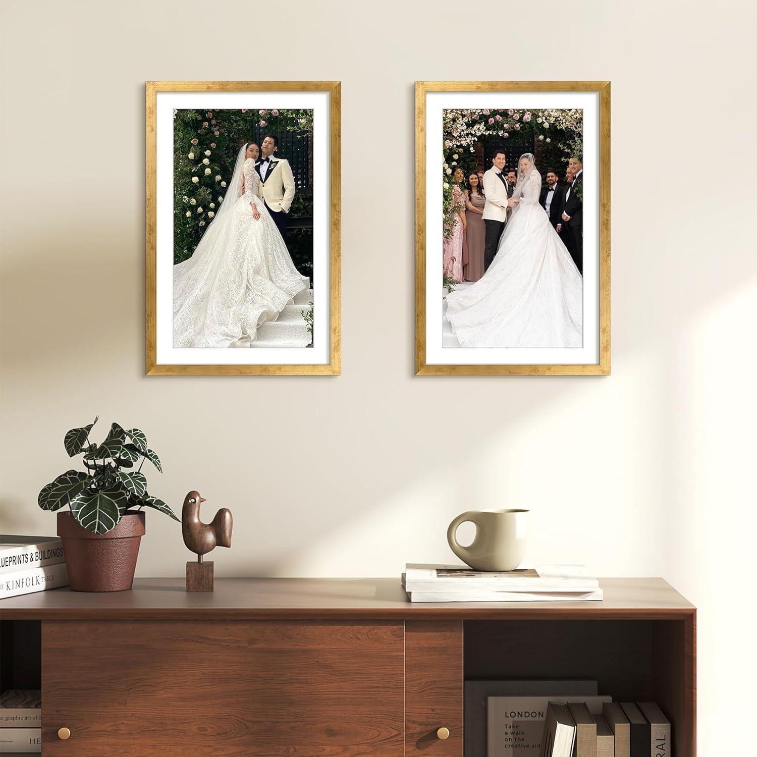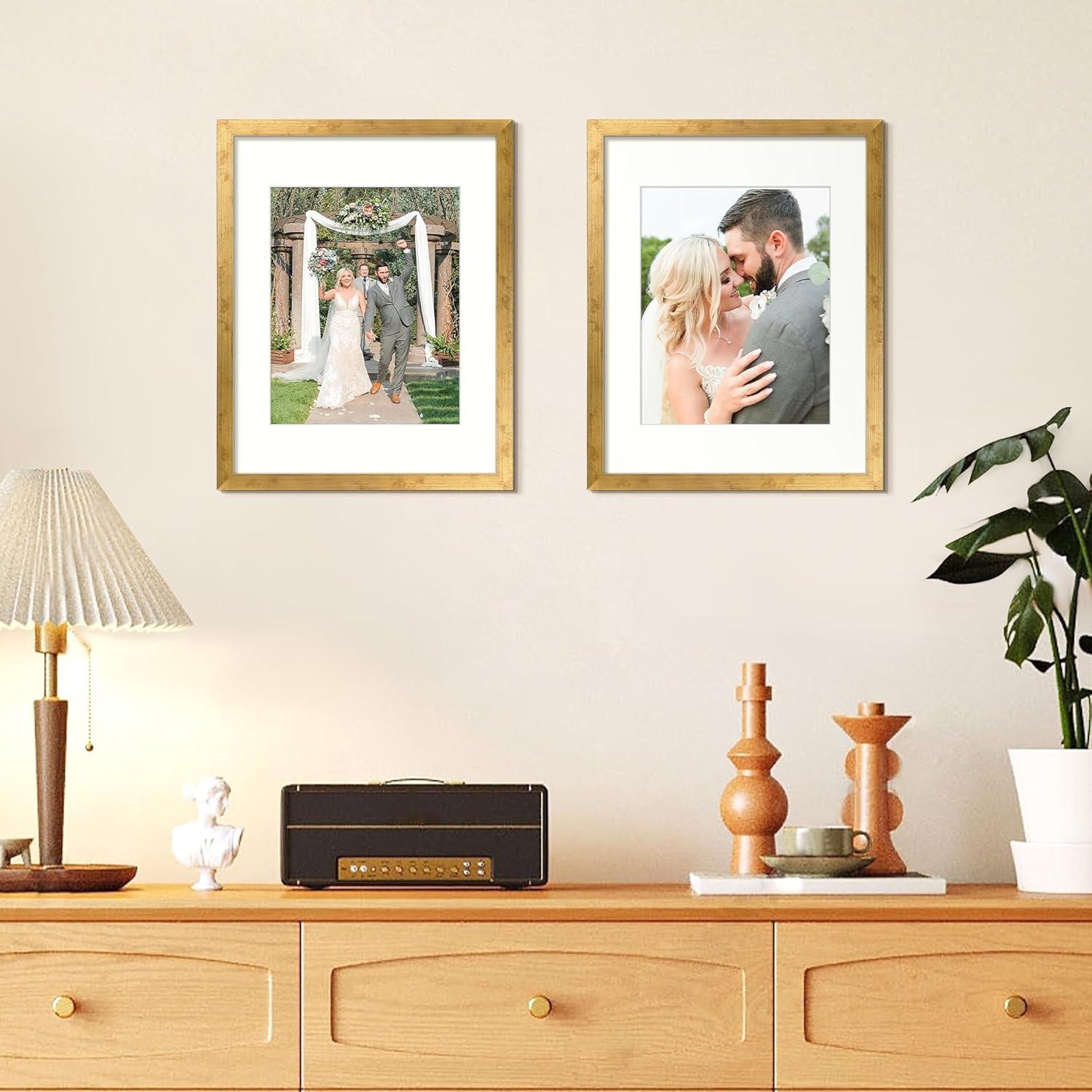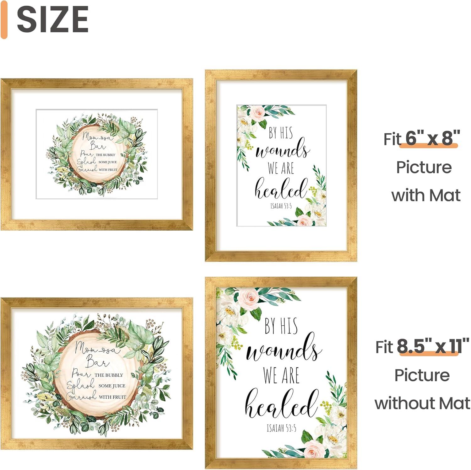 upsimples 8.5 By 11 Picture Frame, Display Pictures 6×8 with Mat or 8.5 x 11 Without, Wall Hanging Photo Frames, Red, 1 Pack(Bronze)