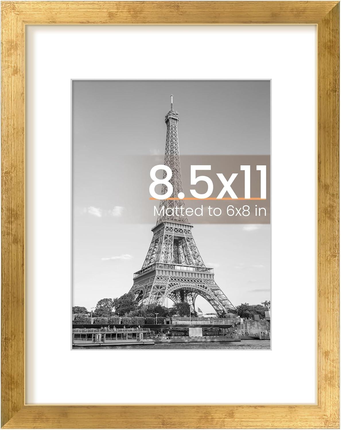 upsimples 8.5 By 11 Picture Frame, Display Pictures 6x8 with Mat or 8.5 x 11 Without, Wall Hanging Photo Frames, Red, 1 Pack(Bronze)
