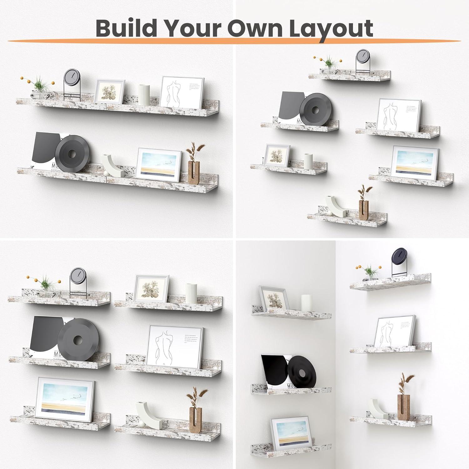 Value for Money – The 6pack wall shelves not only can be assembled into a long shelf measuring up to 47 inches for wall display, but also can be placed individually in every corner, organizing your small items at any time.